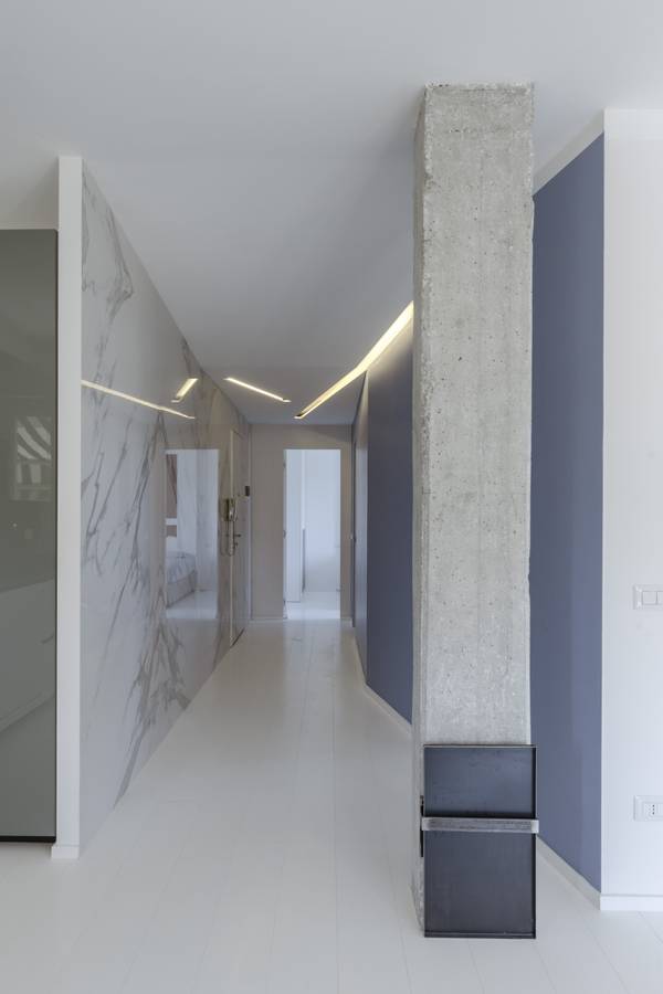 Gli ambienti godono di una forte luce naturale. L’obiettivo è stato ricreare nei restanti ambienti un effetto simile attraverso una illuminazione indiretta.