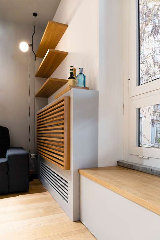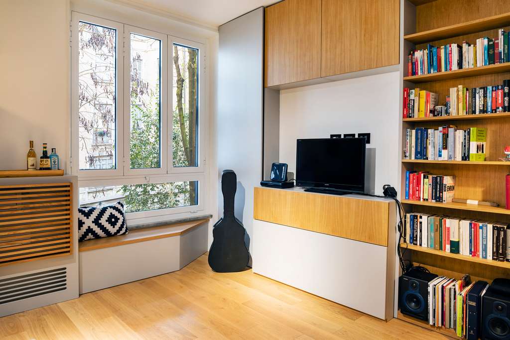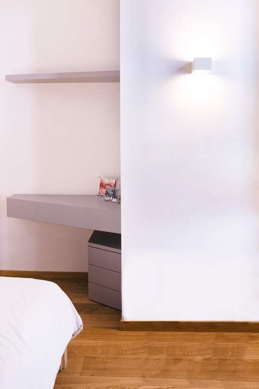 Ogni parete è stata ripensata come fosse un contenitore, l’obiettivo è stato dare la possibilità di liberare il più possibile lo spazio calpestabile per garantire comodità, grazie anche ad un pensiero creativo continuo.