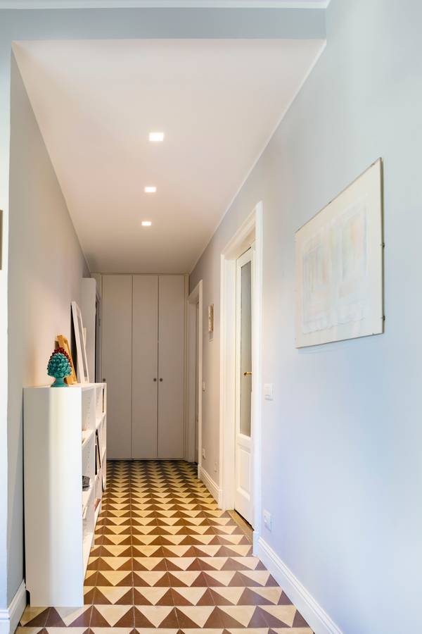 L’appartamento è sito al secondo piano di uno stabile di inizio ‘900. Nonostante abbia subito delle piccole trasformazioni, conserva la disposizione originaria, ovvero un corridoio cieco da una parte e il susseguirsi delle stanze dall’altra.