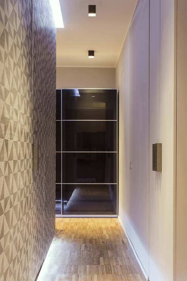 L’appartamento ha i suoi limiti nei muri perimetrali; il “box” del bagno, posizionato al centro, rialzato da terra con delle putrelle industriali, arretrate rispetto al perimetro, lo rende ancora più leggero e favorisce la fruibilità degli spazi generando dinamiche possibili per una coppia alla ricerca del proprio locus.