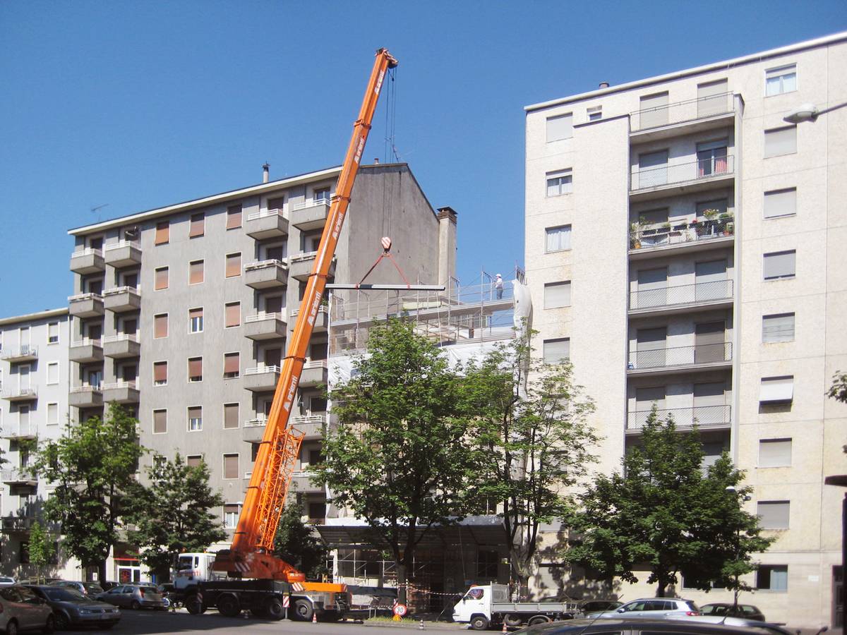 Per la realizzazione dell’opera si sono dovuti analizzare attentamente pesi e materiali utilizzati per questo tipo di recupero su di una palazzina del 1920.