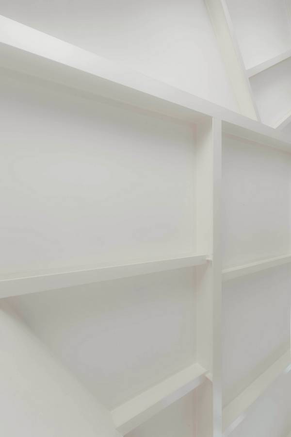 Il gioco delle travi al soffitto diviene ripartizione degli spazi interni, i quali si pongono in stretto dialogo con l’esterno e la luce.